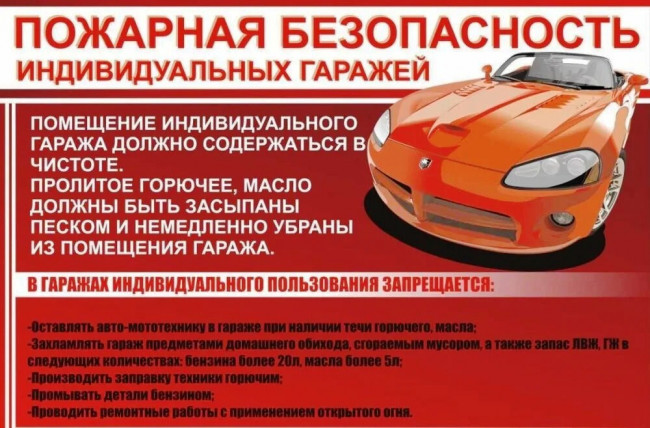 Чтобы избежать пожара в гараже,соблюдайте правила пожарной безопасности: