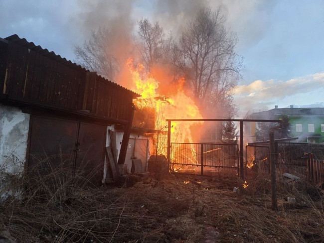 02.04. на центральный пункт пожарной связи поступило сообщение о пожаре по адресу: г. Черемхово, ул. Цэсовская, хозяйственные постройки. На момент прибытия первого подразделения летняя кухня и гараж были охвачены огнем. Пожарными производилось вскрытие металлических ворот гаража бензорезом. В результате пожара летняя кухня и гараж повреждены. Предварительная причина пожара - неосторожное обращение с огнем.